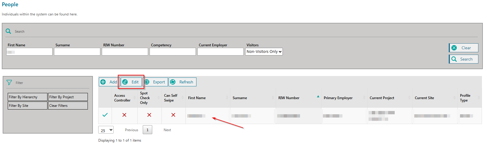 From the returned results, highlight the cardholder row and click on the EDIT button.
