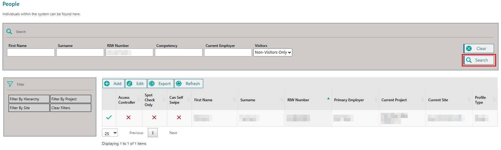 Complete search criteria to filter the list to find the required cardholder and click on the SEARCH button.