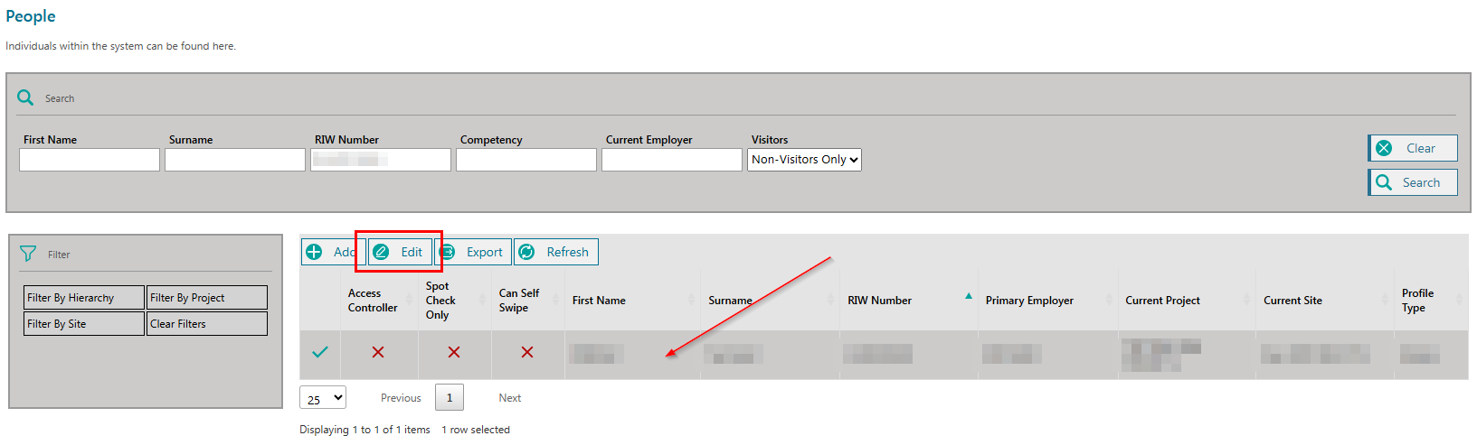 From the returned results, highlight the cardholder row and click on the EDIT button.