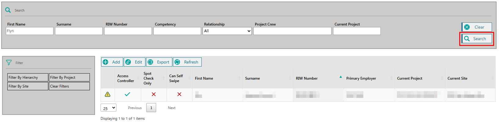 Search for the cardholder by adding information in the criteria fields and clicking on the Search button.
