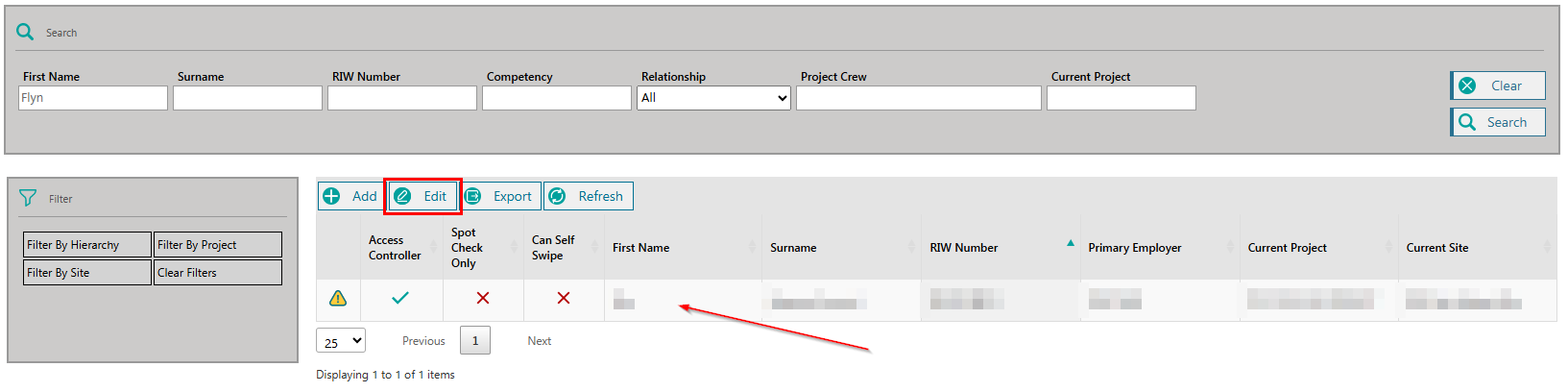 From the returned search results, highlight the cardholder record and click on the Edit button.