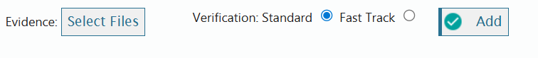 Upload the required evidence by clicking on Select files and following the prompts. Then choose Standard or Fast Track. Fast tracks costs $55+GST for an 8 business hour turn around. Click on the Add button once complete.