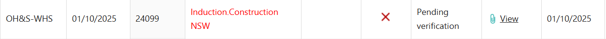 ![]() | REGISTERED TRAINING ORGANISATION A certificate is uploaded directly by a Registered Training Organisation (RTO). As the RTO is the source of truth, competencies do not need to be verified by the RIW Service Desk. RTO's can follow instructions in How does a Training Provider assign a competency to a cardholder? |