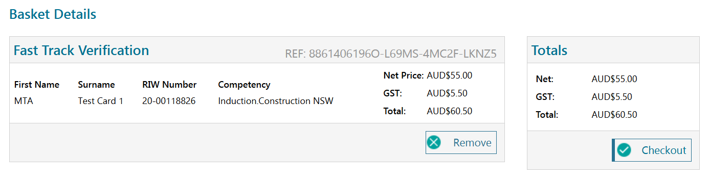 A Results dialogue box appears. This box will include a link to the Shopping Basket if any Fast Track verifications have been included in the process.
