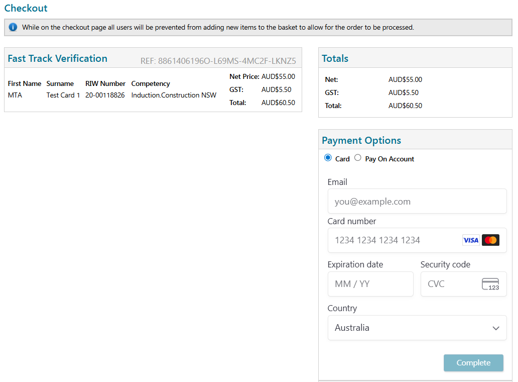 Please note that if Fast Track is selected, this will create a Shopping Basket item for payment as this is a non standard service (processing within 8 business hours).