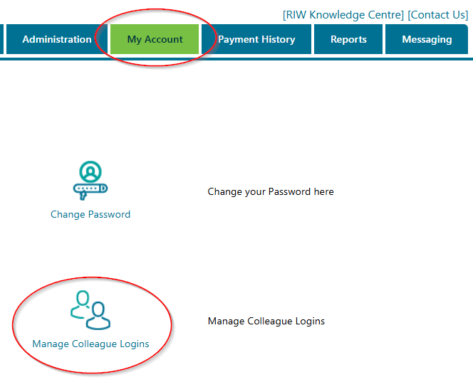 2 | Click on My Account > Manage Colleague Logins. ![]() |